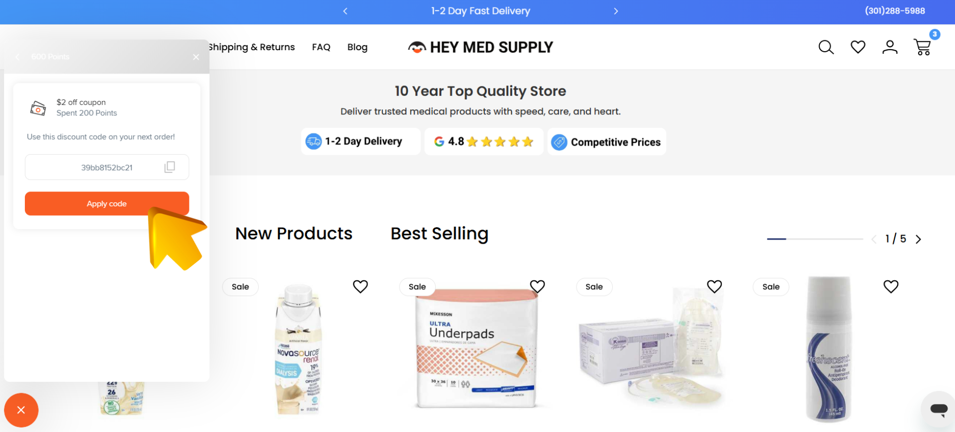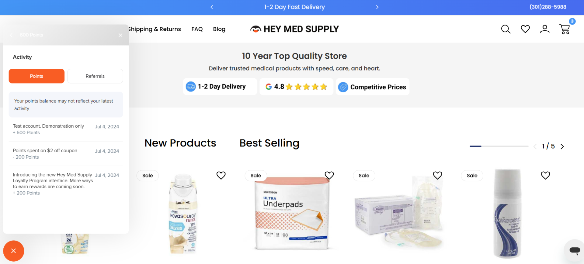 Are you interested in earning points for every dollar spent on frequently purchased items such as nutrition drinks and under pads, and collecting coupons for future purchases? Then, sign up to join Hey Med Supply’s Loyalty Program. Start saving on medical supplies today.