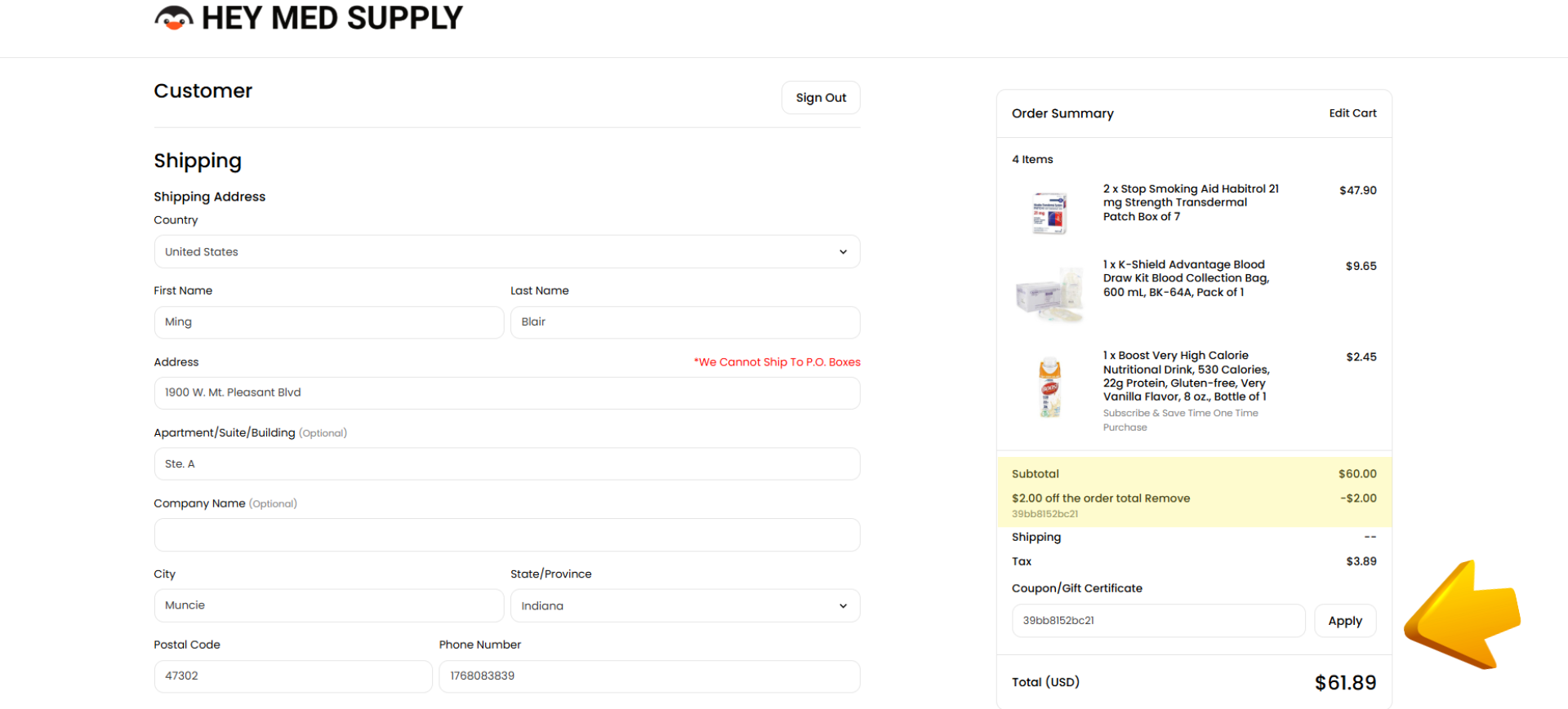 Join Hey Med Supply Loyalty Program. All your medical supplies with ease and receive the package within 1-2 business days. From oral supplements to incontinence and more, we’ve got you covered.